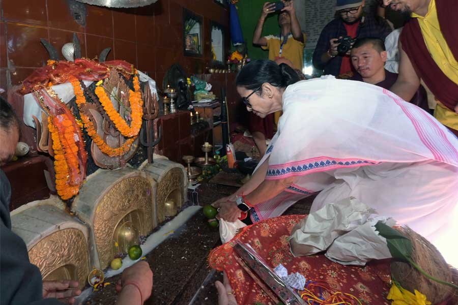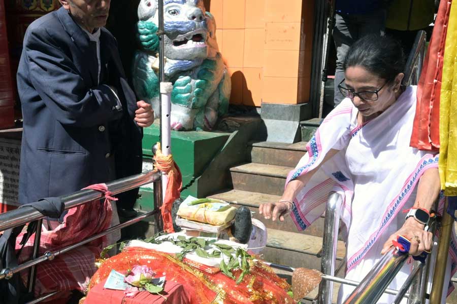 উত্তরবঙ্গে বিপর্যয়ের পরিস্থিতি খতিয়ে দেখার মাঝেই মহাকাল মন্দিরে পুজো দিলেন মুখ্যমন্ত্রী মমতা বন্দ্যোপাধ্যায়। আজ বৃহস্পতিবার দার্জিলিঙের এই মন্দিরে যান তিনি।