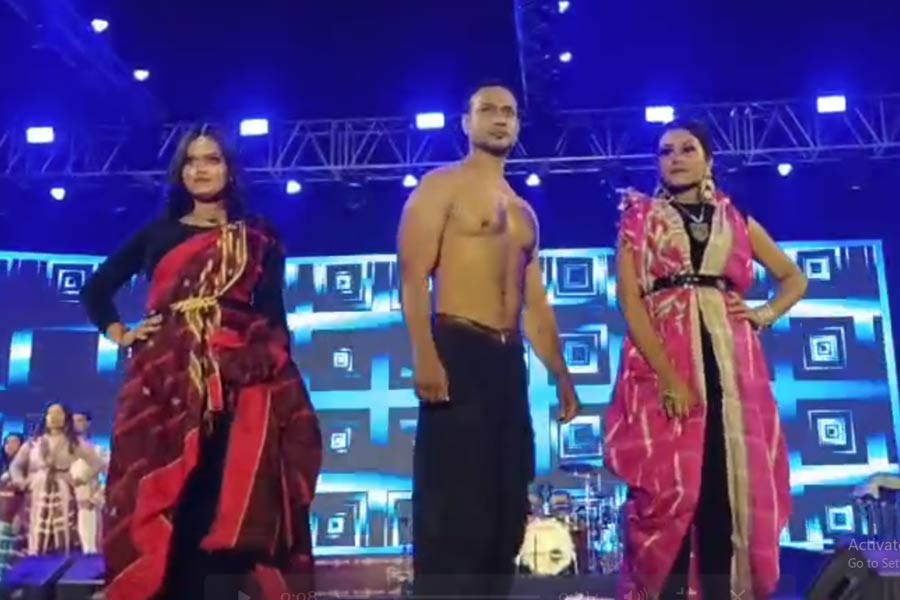 শুধু নাচ নয়, শুক্রবার বিষ্ণুপুর মেলার অন্যতম আকর্ষণ ছিল আদিবাসী ফ্যাশন শো। আদিবাসী সমাজের দৈনন্দিন জীবনযাপন, পোশাক-পরিচ্ছদ থেকে শুরু করে বিবাহরীতি ও সংস্কৃতিকে র্যাম্প ওয়াকে তুলে ধরা হয়। ঐতিহ্য আর আধুনিকতার মেলবন্ধনে এই ফ্যাশন শো দর্শকদের কাছে অন্যরকম অভিজ্ঞতা। সাংস্কৃতিক মঞ্চে আদিবাসী জীবনচিত্রের এমন উপস্থাপনা যে আলাদা নজির গড়েছে, তা বলাই বাহুল্য।ছবি: অসিত রজক।