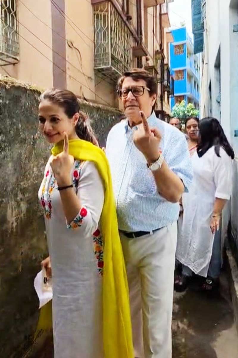 রং মিলান্তি পোশাকে ভোটের উৎসবে শামিল নুসরত জাহান, যশ দাশগুপ্তও। পরনে তাঁদের সাদা টি শার্ট ও ব্লু জিন্স। গণতান্ত্রিক অধিকার প্রয়োগ করে সোশাল মিডিয়ায় সেই ক্যামেরাবন্দি মুহূর্ত ভাগও করে নিয়েছেন যুগলে। সম্প্রতি ইডি তলবের পর ভোট দিতে গিয়ে প্রথম জনসমক্ষে ধরা দিলেন প্রাক্তন তারকা সাংসদ।