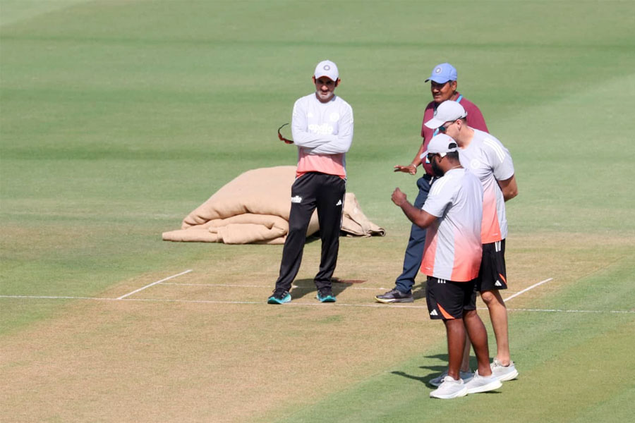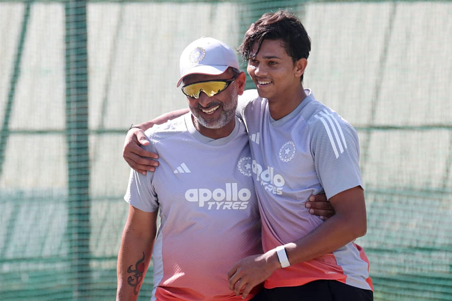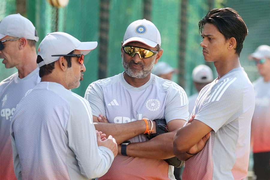 ইডেন পর্ব ভুলে শুক্রবারের অনুশীলনে অনেক বেশি মনোযোগী দেখা গেল যশস্বী জয়সওয়ালকে। ইডেনে রান পাননি। তাই নেটে যথেষ্ট ঘাম ঝরিয়েছেন বাঁহাতি ওপেনার। গুয়াহাটিতে অনুশীলনের ফাঁকে হেডকোচ গৌতম গম্ভীর এবং ব্যাটিং কোচ সীতাংশু কোটাকের সঙ্গে কথাও বলতে দেখা গেল তাঁকে। ছবি: দেবাশিস সেন।