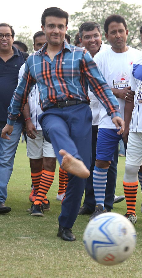 ক্রিকেট থেকে যাবতীয় প্রতিষ্ঠা পেলেও ফুটবল তাঁর প্যাশন। সেই সৌরভ গঙ্গোপাধ্যায়কে ফের দেখা গেল ফুটবলে লাথি মারতে।