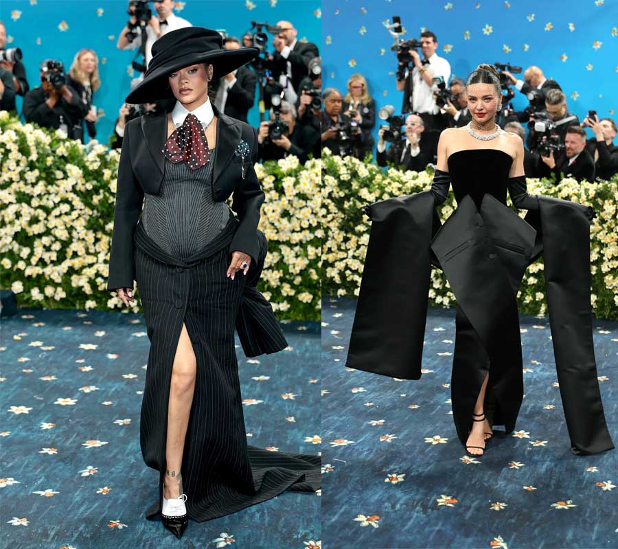 ৫ মে নিউইয়র্কে মেট্রোপলিটন মিউজিয়াম অফ আর্টে 'সুপারফাইন: টেইলরিং ব্ল্যাক স্টাইল' উদযাপনে অন্তঃসত্ত্বা রিহানা এবং মিরান্ডা কের।